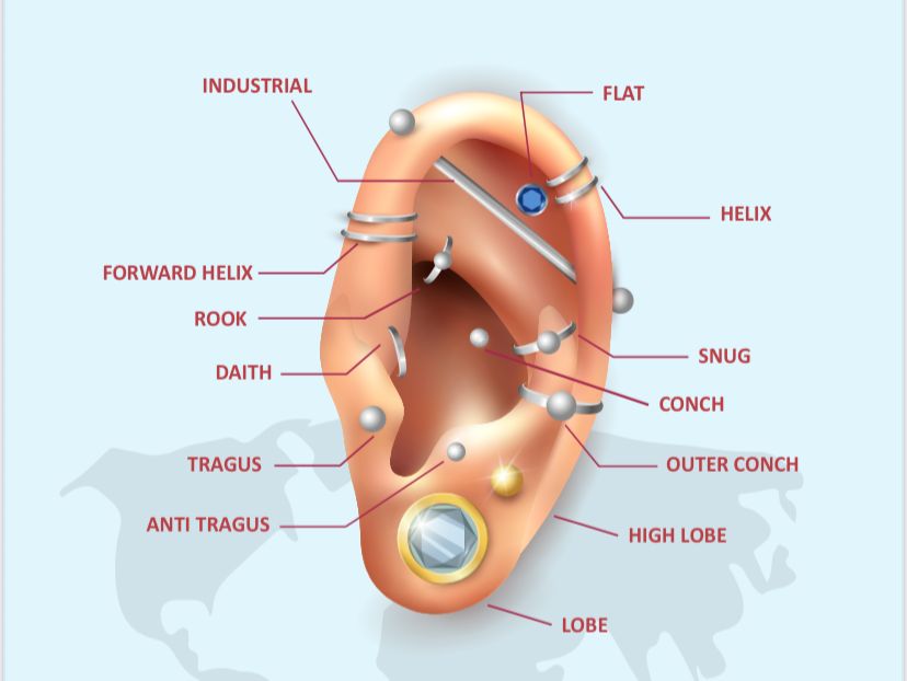 تخريم الأذن Anti tragus أو Forward Hellix بالإبرة